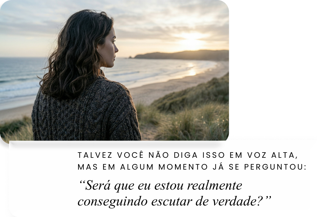 Uma experiência em que compreensão, percepção e vivência caminham juntas — para que essa forma de escutar não fique apenas no entendimento, mas comece a se tornar algo presente na sua prática.